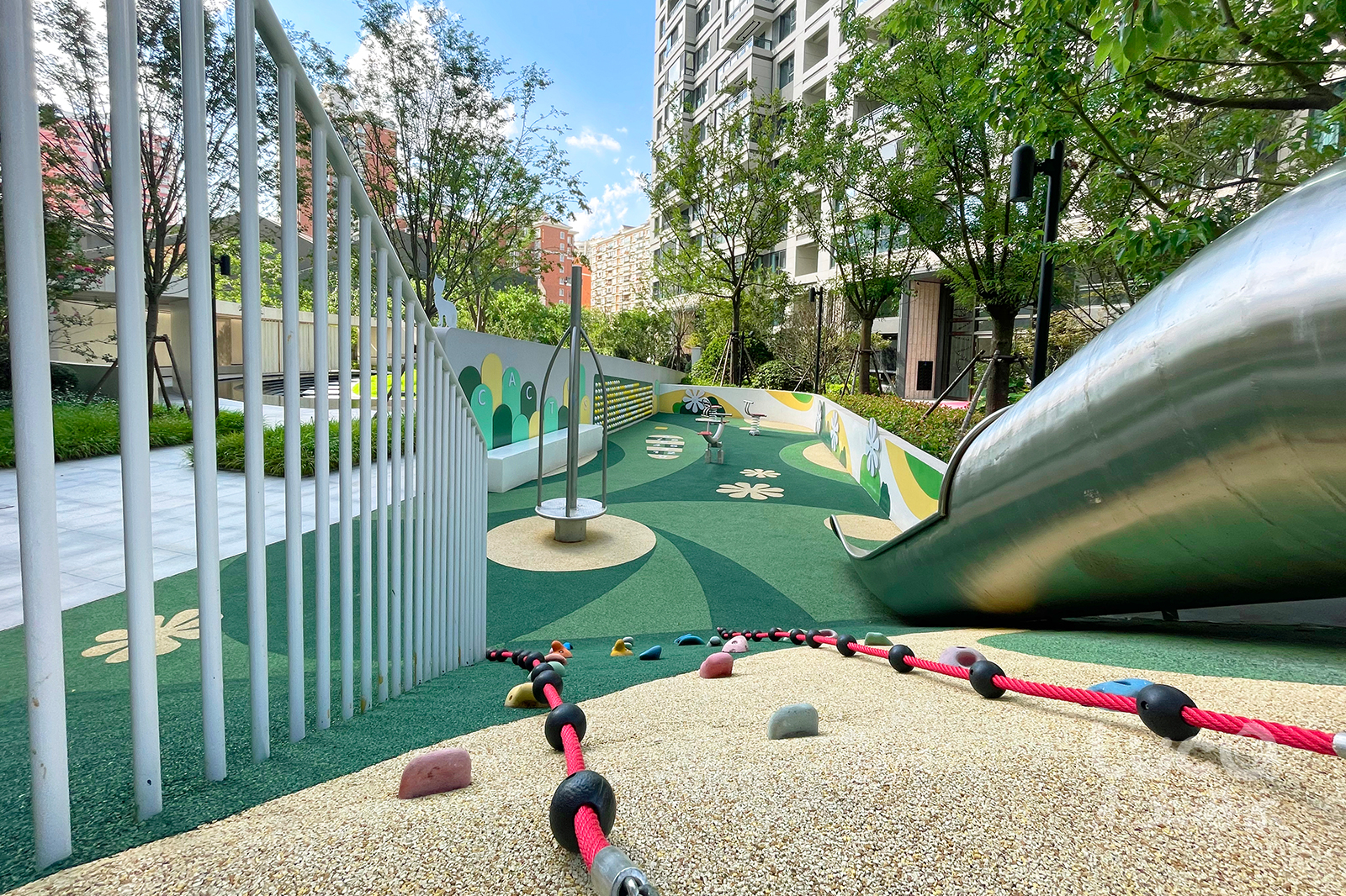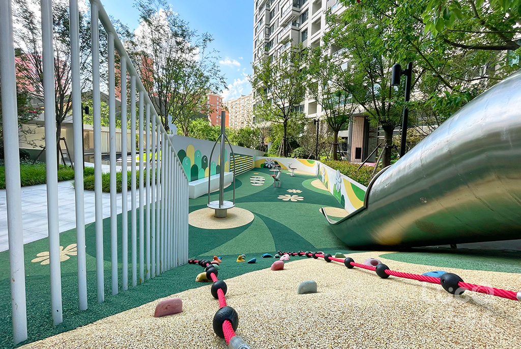 上海瑞虹新城(167A地塊)項目位于虹口區內環內市中心地段,一路之隔便是學校,一墻之隔為地鐵10號線郵電新村站,地理位置優越。在有限的場地中,我們規劃出東區的兒童游樂場地和西區的健身活動場地。