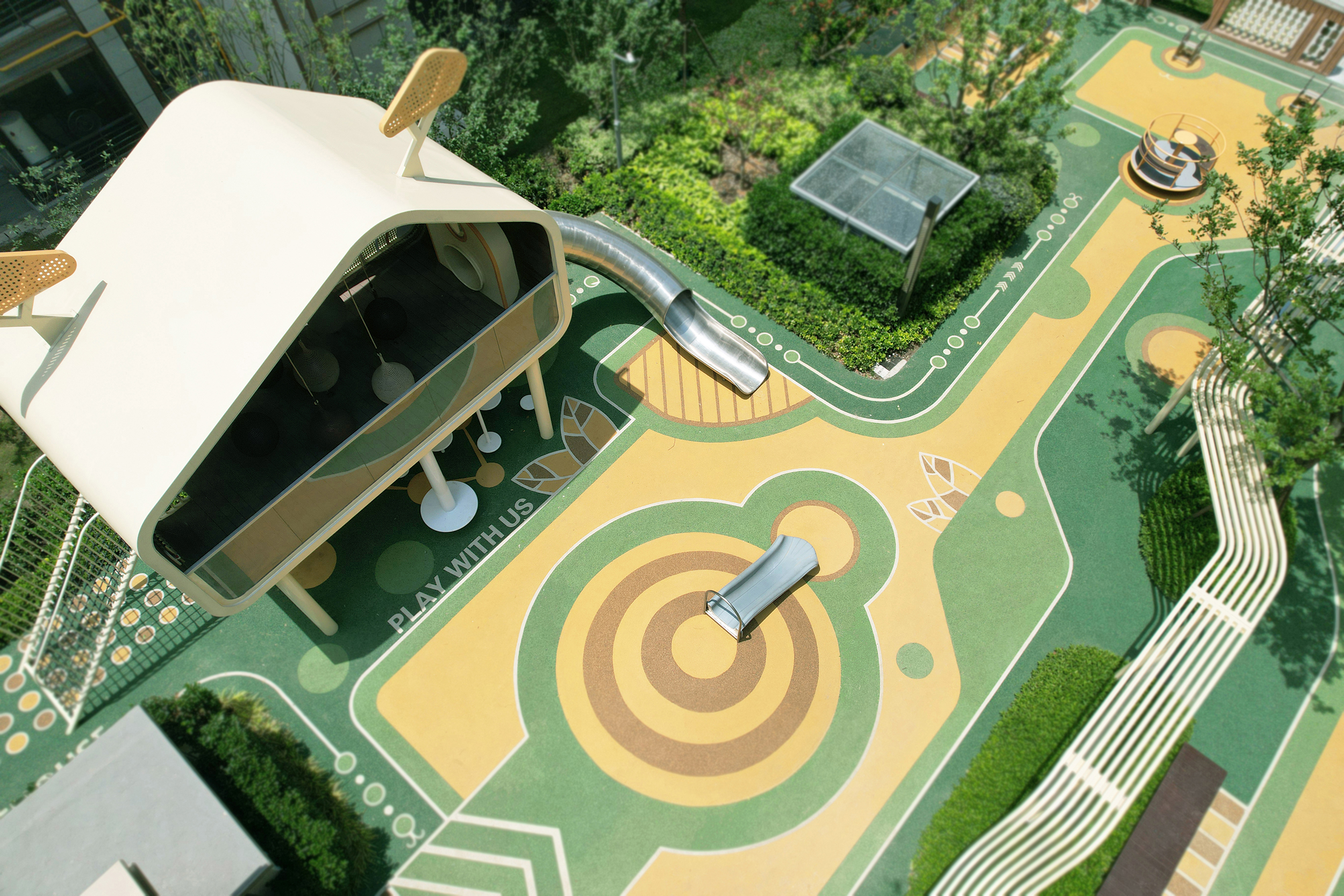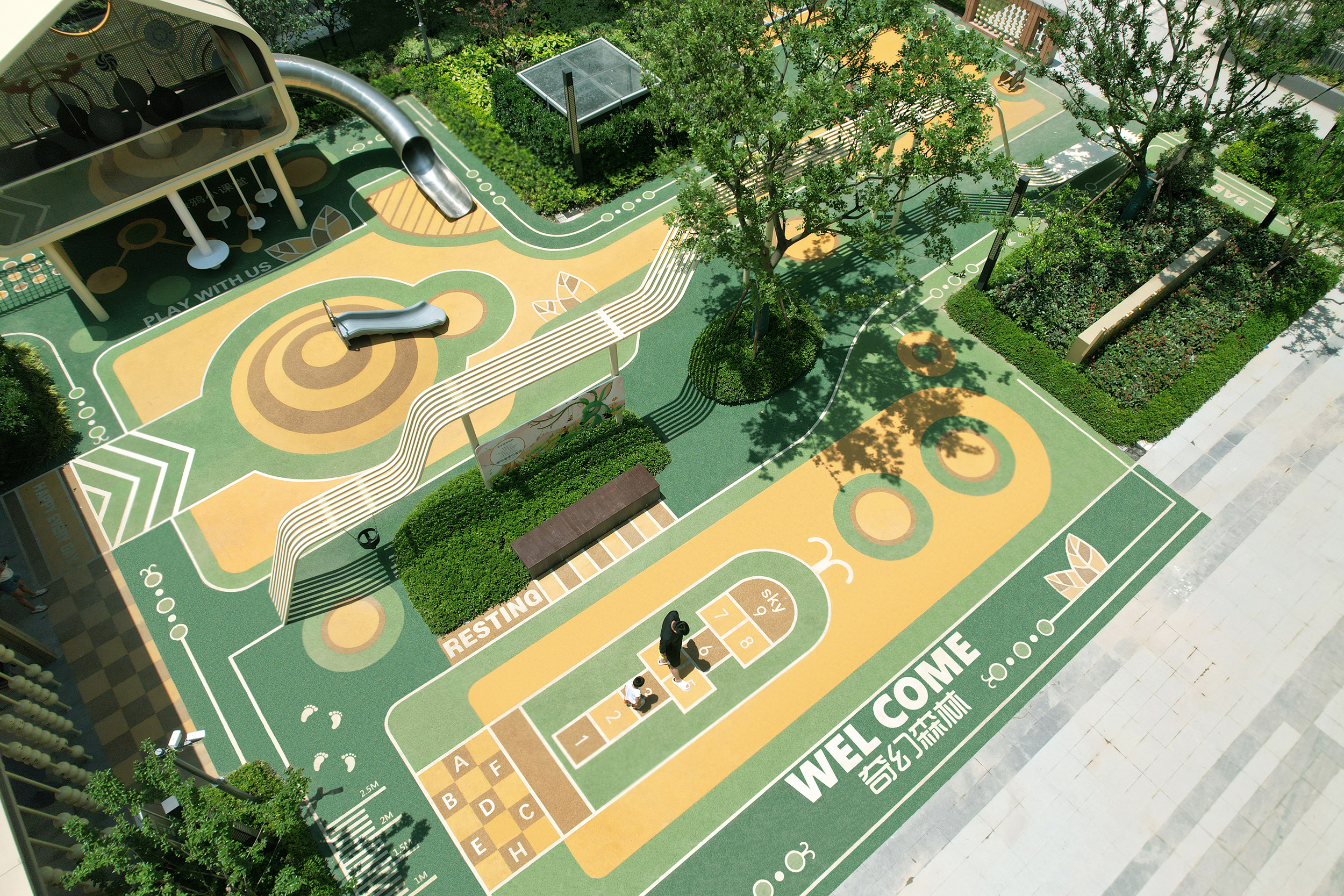 中國鐵建·星樾云澗位于上海市松江新城核芯地段,為精英圈層打造未見的高知國際住區。兒童樂園占地總面積約850㎡,分為森林馬戲團和全齡探索花園兩個場地。