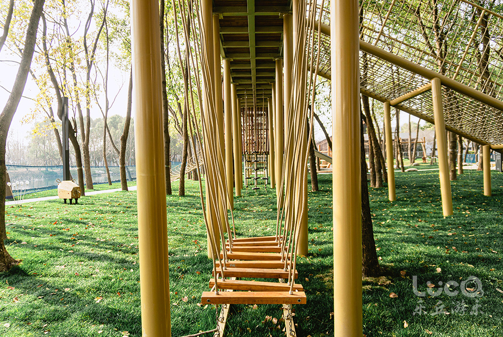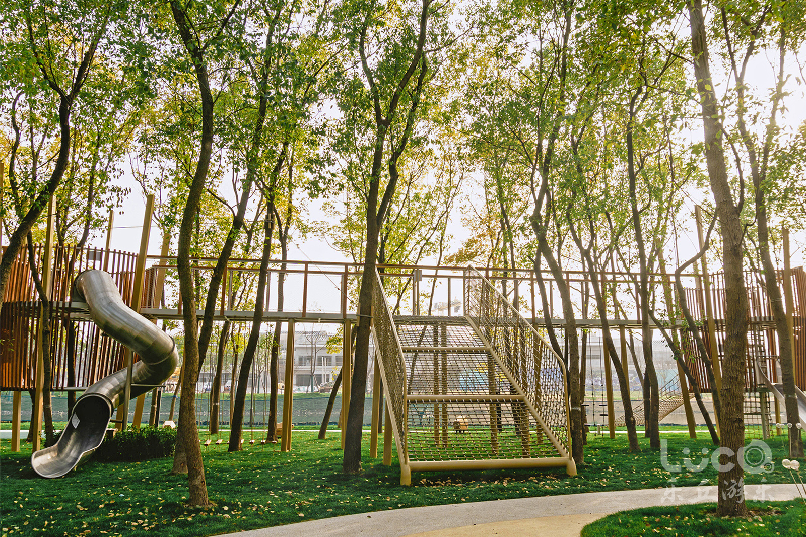 桃源森林國際旅游度假區,位于長三角一體化示范區核心位置,滬蘇杭黃金旅游中心交會點,緊鄰中國六大古鎮-烏鎮景區。整體規劃占地面積約13平方公里,擁有華東平原數萬畝水鄉森林秘境和近百座度假島嶼,森林覆蓋率約90%,被譽為“大自然的森林島嶼生態博物館”,與烏鎮僅一河之隔。場地整體自然平坦,植被茂盛,多為高大喬木。本案以“營造林海中的童趣”為設計愿景,以自然探索為核心理念對場景及游樂設備進行設計深化及落地。希望讓孩子們在這片樟樹林中,以深刻而基本的方式來認識、保護自然,開啟一場對城市兒童樂園的嶄新探索。