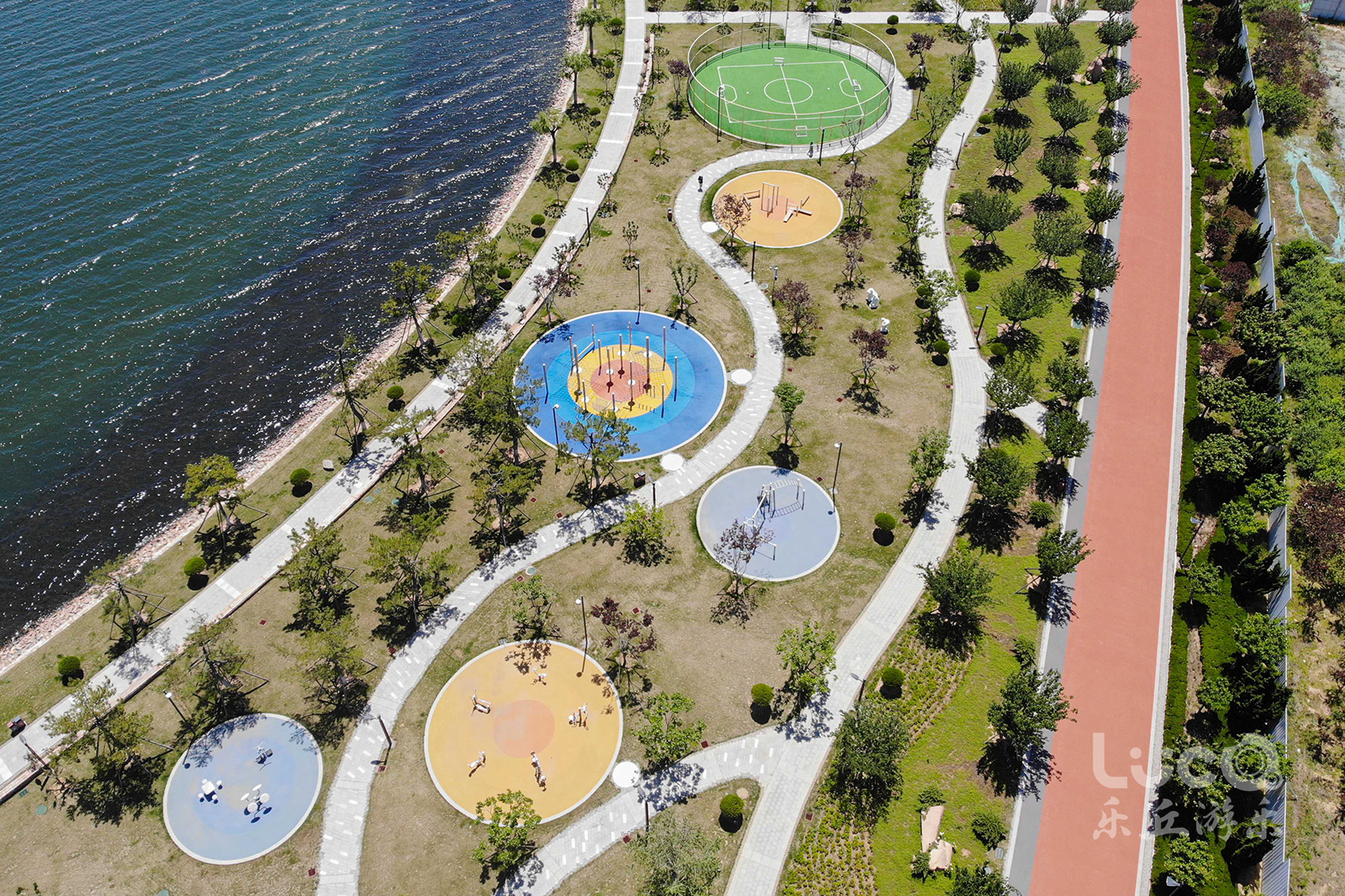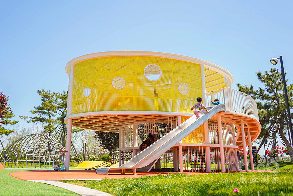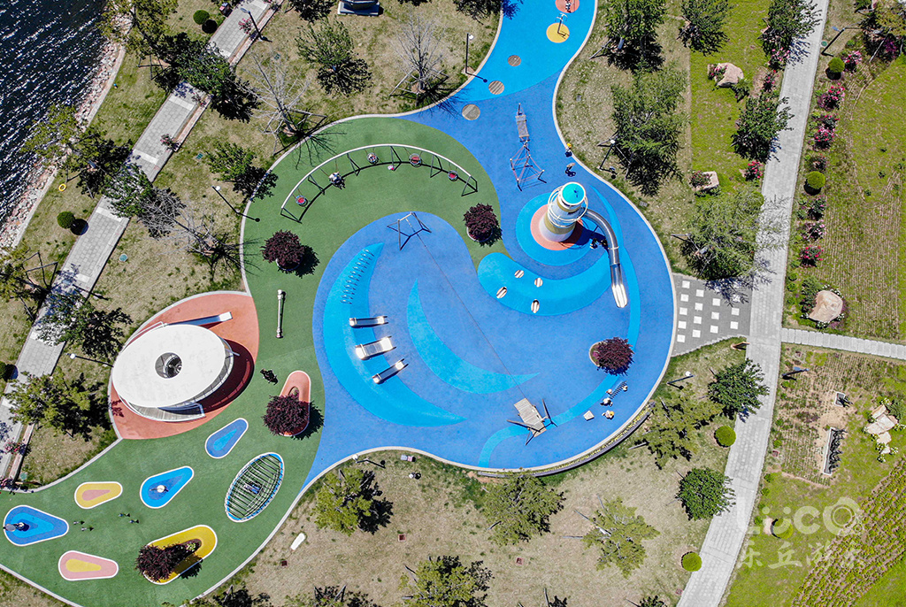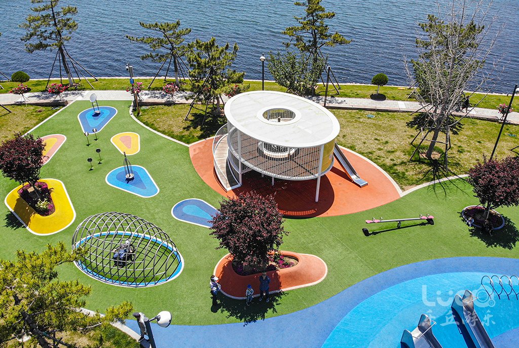 位于山東半島東部的威海市石島灣畔的鳳凰湖公園,如展翅欲飛的鳳凰,拉近了石島、赤山與繁華大都市之間的距離。設計師結合地形獨特性,將兩個場地一分為二,鳳身為兒童活動場地,鳳尾為健身運動場地。2020年初夏,聲名遠播的鳳凰湖,再一次完成涅槃蛻變,全新亮相。由樂丘團隊打造的多功能兒童樂園,正式向當地市民開放。
